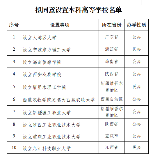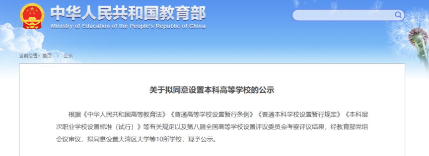 6月11日配资门户平台配资,教育部公布《关于拟同意设置本科高等学校的公示》,拟设立大湾区大学、宁波东方理工大学等10所高校。